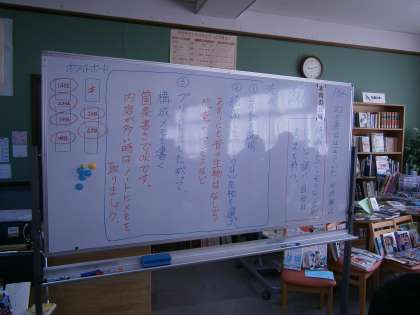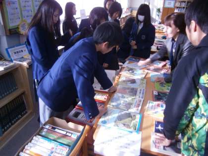 1年生の国語では,図書室を活用した授業が行われています。先週から,「幻の魚は生きていた/中坊徹次」について学習をすすめていますが,今日は,「絶滅した(しそうな)生物について調べ,自分の考えをもつ」ことを目標に,教員による全体説明のあと,絶滅しそうな生物調べ,プリントにしたがって構成メモを書くと言う順に授業がすすみました。調べる内容については,書籍とタブレットパソコン(インターネット)の両方が使えるようにしありました。生徒たちは,どんな生き物について,どんな考えを述べることができるのでしょうか。高野中学校では,図書室を「学習・情報センター」として,学校司書の先生と相談しながら多くの教科,学年で活用しています。