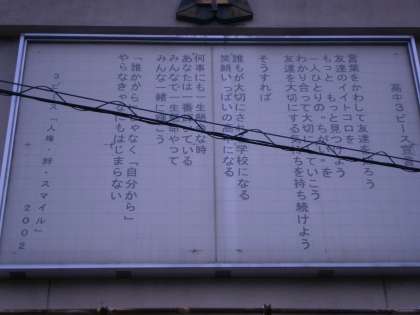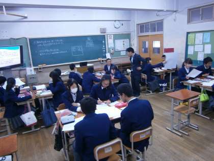 5,6時間目には全学年で人権学習が行われました。写真は,高中3ピース宣言と2年生が,自分の意見を4人グループ内で発表,意見交流しているところです。今回の授業は,2小学校の先生方にもご参観いただき,授業後は,学年ごとに内容について協議し,全体の場で出た意見を共有しました。