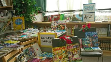 さて,図書室開館も,19日,20日のあと2日間のみとなりました。現在,生徒のみなさんに選書会で選んでもらった新しい本が、どんどん入って来ています。冬休み明けまで,5冊の本を借りることができます。クリスマスの絵本コーナーもあります。ぜひ、図書室に来てください。みなさんの来室をお待ちしています。ディスプレーも,冬,雪,クリスマスを意識したものに変わっています。