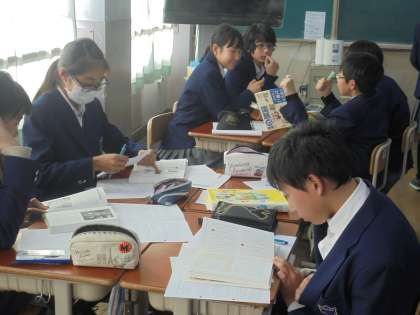 1年の総合的な学習の時間(6時間目)の様子です。来年度5月に行う「生き方探究チャレンジ体験」を見据え,図書室の本を使って,仕事について調べる学習が始まりました。どの生徒も将来自分が働く姿をイメージしながら熱心に調べ学習をすすめていました。