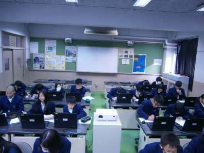 コンピュータ室で学習をすすめている1年生のの様子です。