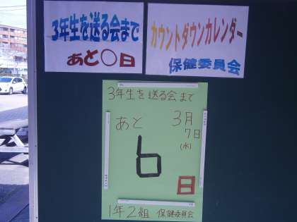 3年生の37名は,今日行われている京都府公立高等学校中期選抜を受検しています。来週の今日は,卒業式の前日です。1,2年生は,来週行われる「3年生を送る会」に向けての練習を,始業前に,そして,放課後にがんばっています。生徒会黒板には,次のようなメッセージが掲げられています。