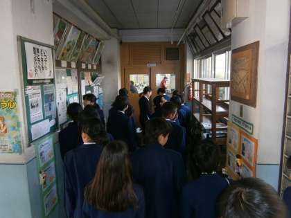 午前中,1年生は,学校の中を担任引率でひと回りしました。さっそく今日からお世話になるお茶(やかん)のあるところ,音楽室など普段使う教室を確認しました。