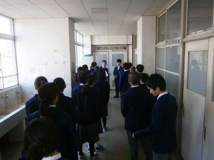 職員室に入る練習もしました。各クラス2名の生徒が「○年○組○○です。」と緊張しながらも元気よく言うことができていました。
