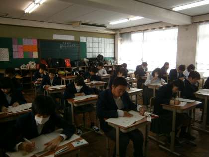 今日は,全国の小6と中3で「全国学力学習状況調査」が行われています。3年ぶりに理科を加え,国語A,B,数学A,B,理科の3教科で行われています。写真は,国語Bの問題に取り組む生徒の様子です。