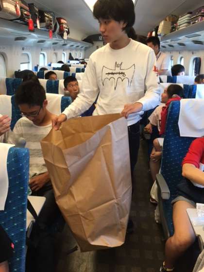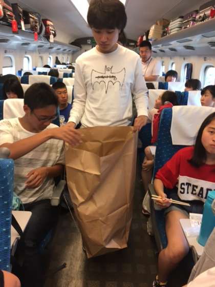 ご飯を食べ終わって、生徒会長自ら、ゴミの回収です。ひかり460号の乗車時間も11:40の東京駅到着まで10分を切りました。