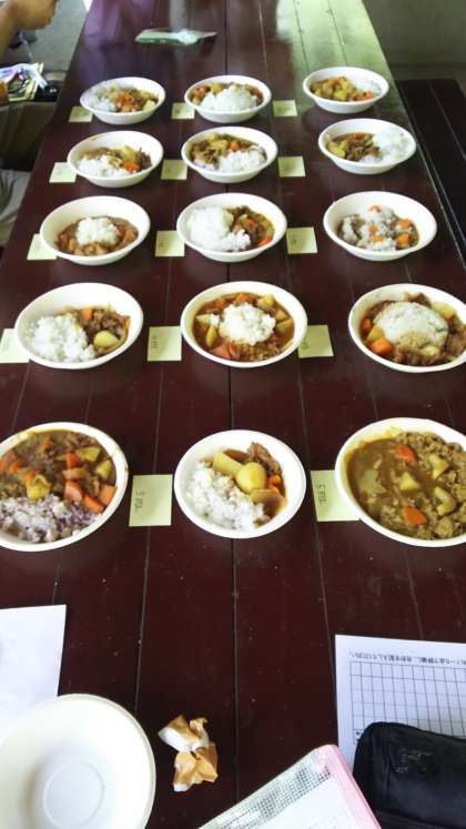 ついに,すべての班のカレーが完成しました。全員よく頑張りました。もしも,誰かが自分の責任を果たさなければ,カレーが完成することができなかったはず。どの班のカレーもおいしそうです。