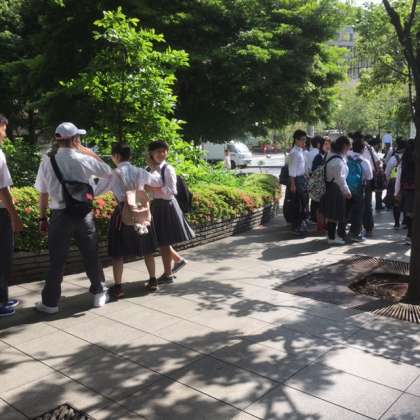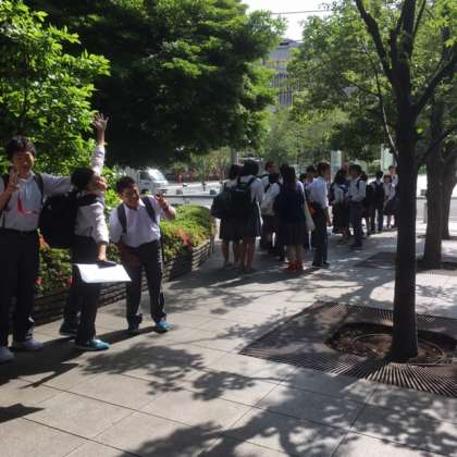 ホテルを出発した生徒たちは,各クラス班別で通勤時間帯なので人が多いので,はぐれないように気をつけて赤坂見附駅に移動しました。班ごとにメトロの駅のホームに移動し,いよいよ班別行動開始です。写真は,移動中の様子です。
