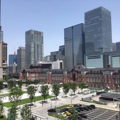 東京駅前にある、丸ビルから見た東京駅です。生徒は、足が痛くなるほど、歩き回って、東京の街を満喫しているようです。