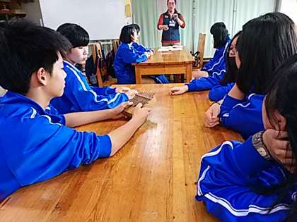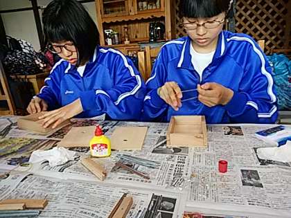 カリンバ教室に参加している生徒の様子をお伝えします。カリンバとは,箱に並んだ細い金属棒を弾いて演奏するアフリカの楽器のことです。まず,カリンバの歴史を学ぶことから始まりました。硬い板にねじをつけるのが大変です。しかし,試行錯誤を繰り返しながら,段々とカリンバの形になってきたかな。