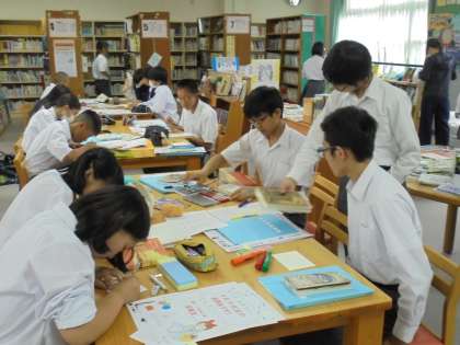 水曜日に開催された委員会では,選書会の打ち合わせと出張図書館の準備を行いました。出張図書館は,現3年生が2年のときから始めた取り組みです。図書室に来なくても,各校舎で本を借りることができるので,そのことが貸出冊数の要因の一つであると思います。おすすめの本を紹介するポップ製作もがんばりました。どうぞ各校舎の出張図書館に本を借りに来てください。