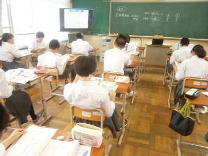 6時間目の学活の時間に,3年生は進路のことについて学習しました。担任から制度や学校・コースについて,また,進路希望調査の記入方法についての説明がありました。どの教室でも生徒たちは真剣に資料に目を通していました。