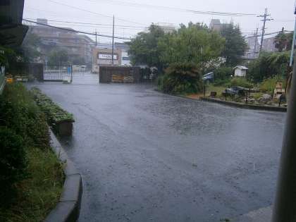午前7:00現在,大雨洪水警報が発令されていますので,生徒のみなさんは,登校を見合わせ,自宅待機してください。