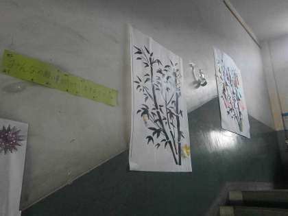 さて,2年生の校舎では,校舎の階段の壁に,笹の絵があります。生徒たちは,思い思いに,笹に願い事を書いた短冊を飾ったり,色とりどりの飾りをつけたりして,七夕を楽しんでいます。