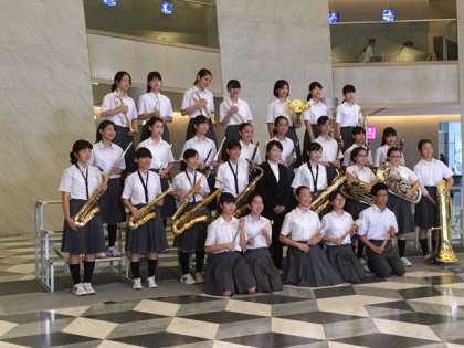 第55回京都府吹奏楽コンクールが1日、京都市左京区の京都コンサートホールで開幕しました。高野中吹奏楽部は,4日午前,演奏を披露し,銅賞を受賞しました。28人全員でがんばりました。写真は,演奏を終えホッとしている生徒たちです。