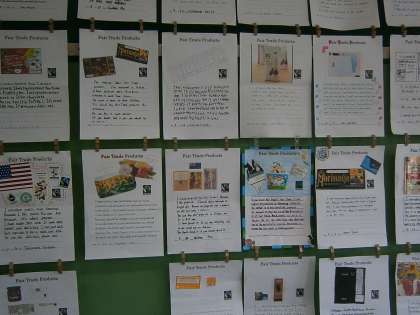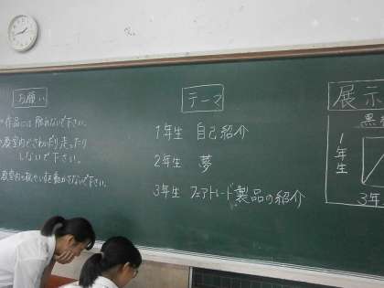 英語展では,それぞれの学年がテーマに沿って作品を完成させました。3年生は,少し長い文を書くことができるようになっています。