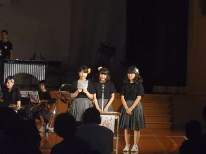9月15日(土)の15:00から,高野中体育館で吹奏楽部定期演奏会がありました。小雨が降る天候でしたが,大盛況でした。生徒たちは,例年この時期に開催している定期演奏会に向けて,ポップスをはじめ,さまざまな曲に挑戦し,練習に励んできました。保護者の方,地域の方,卒業生など,多くの方々にご来場いただきありがとうございました。