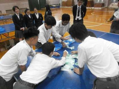 開票作業も体験しました,開票,仕分,点検の作業を分担して体験しました。