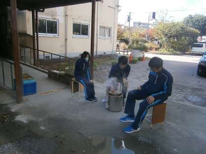 科学部は,9:00前から炭焼きを始めています。完成は,14:00ごろの予定です。どんな炭が出来上がるのかとても楽しみです。顧問の教員が職員室に入ってくると,部屋全体に炭のいい匂いが広がります。
