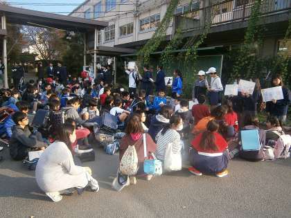 家庭科の授業の様子です。部活動体験では,一旦,中庭に集合し,部活動中学生に引率されて活動場所に移動しました。まず,剣道部の様子です。