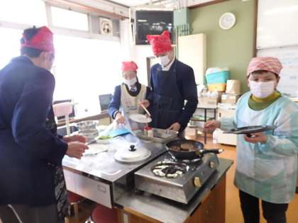 2年生では,調理実習が行われました。各班協力してハンバーグを調理しました。どの班も,ハンバーグの中に十分に火が通っているか,何度も竹串をさして確認をしていました。また,慣れない包丁さばきでハラハラする場面もありましたが,見事に美味しく?時間内に試食できました。限られた時間でより効率よく,体験を伴いながら,知識と技能を修得してくれました。