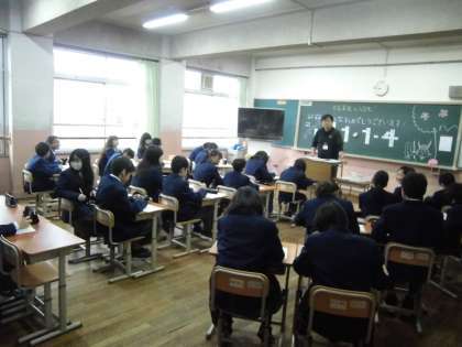 1年生のクラスの様子です。年度初めの学活の時間です。