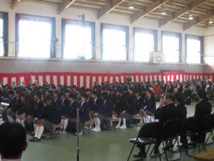 平成23年4月7日(木)入学式がとりおこなわれ、桜満開の下、82名の新入生を高野中学校に迎え入れることができました。前日の始業式を終え、それぞれ上級生に進級した2,3年生は、新しい仲間を迎え、期待と喜びに満ちていました。学校の中にもひときわ活気が戻ってきました。