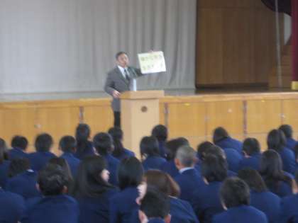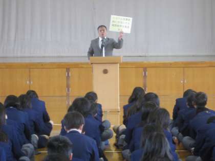 4月11日(月)「義務教育を保障する条件」をテーマに人権学習を行いました。前半は全校生徒が体育館に集まり、校長講話により、高野中学校の教育目標や日本国憲法が保障する自分たちの権利について学習しました。