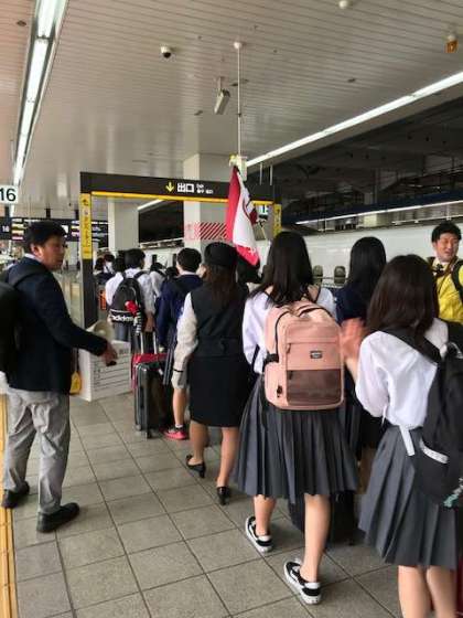博多駅に到着しました。みんな元気いっぱいとのことです。天気は晴れで暑いくらいの陽気だそうです。ペーロン体験が楽しみです。