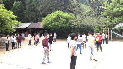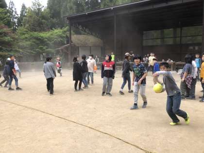 昼食後のレクリエーションが始まりました。みんな,盛り上がっています。