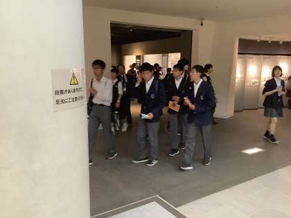 原爆資料館での学習の様子です。資料館の見学の後,被爆体験講話を資料館内の平和会館で聴講します。