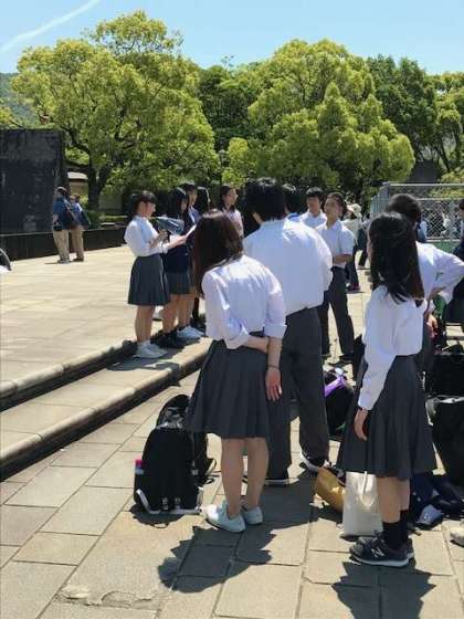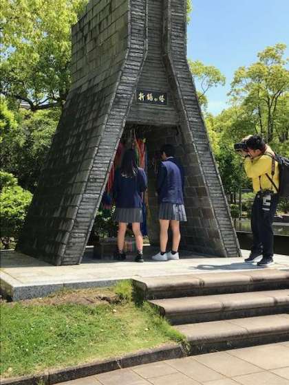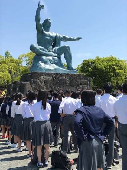 長崎平和公園の平和記念像の前で平和セレモニーを行いました。