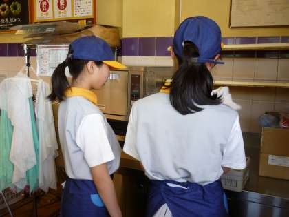 ミスタードーナツでチャレンジ体験をしている様子です。