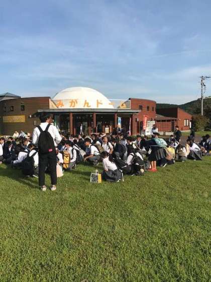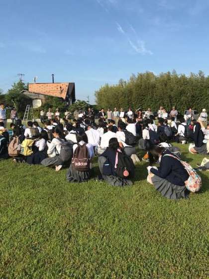受け入れ民家代表の方のあいさつ,生徒代表のあいさつ,諸連絡の後,学年写真を撮影します。