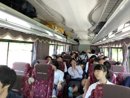 バスは長崎県の西海橋を通過しています。みんな,くたくたのようです。