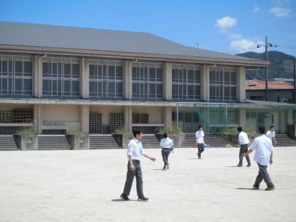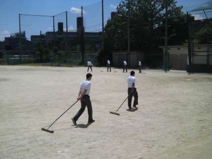 昼休みのグランドの様子です。グランドの西側では,野球部が放課後の活動に向けて,グランド整備を行っていました。グランドの東側では,ボールを使って,外で昼休みをエンジョイしていました。シャツが乱れるぐらいボールを追いかけて走り回っていました。