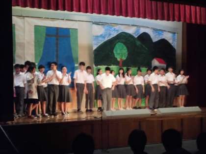3年生の劇チームは,「戦争を知らない子どもたち」を演目に選びました。修学旅行で長崎に行き,戦争の悲惨さや辛さを学びました。そこで,この劇を通して,戦争によって悲惨なこと,辛いことを二度と起こしてはいけない,起こさせないという思いや,現在の自分の存在のありがたさを,伝えました。