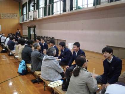 11月22日(金)は2学期期末テスト最終日でした。4時間目から6時間目まで授業が行われました。2年生は,午後に全員が体育館に集合し,「ふれあいトーク in Takano」という取組を行いました。この取組は,2年生約80名が,地域からご参加いただいた大人の方と,いろいろなテーマについて話し合うというものです。1対1で大人と向き合い,本音で「しゃべる」経験と共に,じっくりと「聴く」経験・じっくりと「聴いてもらえる」体験を通して,自分自身や自分の生き方を見つめるきっかけになったのではないでしょうか。ご参加いただきました地域の皆さま,ありがとうございました。