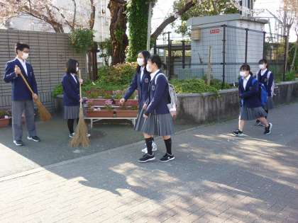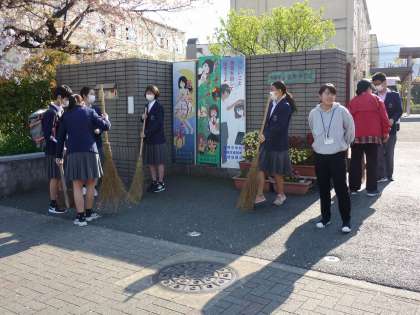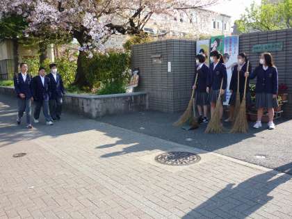 4月8日(水)・9日(木)の2日間となってしまいましたが,生徒会本部役員10名が「朝のあいさつ運動・清掃活動」を行いました。あいさつ運動を通して,新学期の第一歩として,1年生から3年生まで全員が気持ちよく登校できるように,計画・実行してくれました。「おはようございます」と大きな声が飛び交って,明るい気持ちで一日をスタートすることができました。