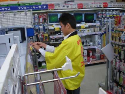 1枚目:保育所(教室の掃除)、2枚目:スポーツ用品店(商品の整理)、3枚目:薬局(作業台の整理)