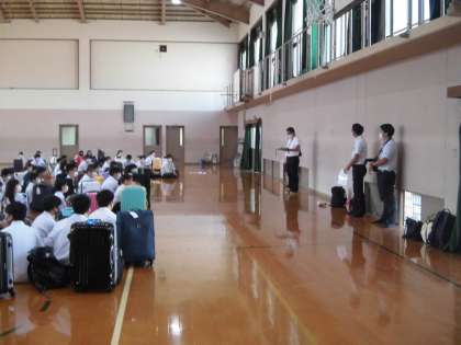 旅行に行きます。8:30に参加者全員集合し,結団式が行われました。