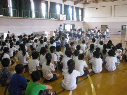 前半の「歓迎セレモニー」では、生徒会本部による歓迎会や吹奏楽部による歓迎演奏が行われました。引き続き、「授業体験」や「部活動体験」が行われ、暑い中でしたが小学生は各々が選択した講座や部活動で、「高野中学校」を満喫していました。