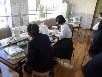 1年生の家庭科の授業で,「クッションカバー作り」を行っています。ミシンを使って生地を縫っていく作業や,アイロンを使って生地のしわをのばす作業を交替で行っていました。自分で作った「世界にひとつだけ」のクッションが出来上がるのが楽しみです。