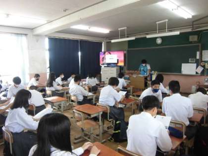 本日からいよいよ2学期がスタートしました。朝,生徒たちが登校し,学校にも活気が戻りました。1限目Zoomによる始業式を行いました。最初に伝達表彰を行いました。3年生女子新体操で京都市・京都府の選手権大会優勝,3年生女子卓球ダブルス3位,吹奏楽部が銀賞でそれぞれ表彰されました。校長先生から「コロナ渦ではありますが,みんなで工夫し,協力して実りある2学期にしましょう」と2学期に向けてのお話がありました。2限目から各クラスで学活,夏休み明けテストなど授業がスタートしました。