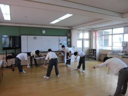 1組では2限目「自立活動」が行われました。タオルを使ったストレッチで体を伸ばしたり,タオルでキャッチボールをしたり,久しぶりにみんなで体を動かしました。久しぶりの授業で2学期モードに切りかえられたのではないでしょうか。