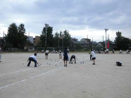 5人玉入れの様子です。5人で5,6個の玉を一気に投げる戦法など各クラス工夫して挑戦していました。