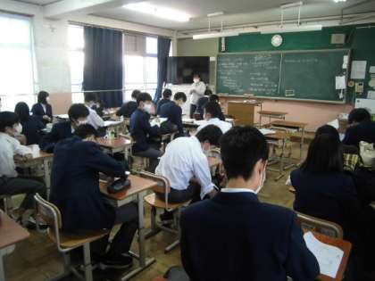 今週の水曜日から3日間,2学期期末テストが実施されます。テストに向けて,放課後に学年ごとに学習会が行われています。質問もしながら学習を進めていました。悔いの残らないように,しっかりやりきりましょう!