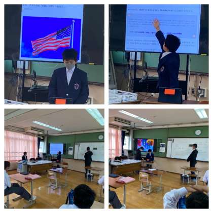 1組の社会の授業では,ちょうどアメリカについて疑問に思ったことを調べて発表をしていました。