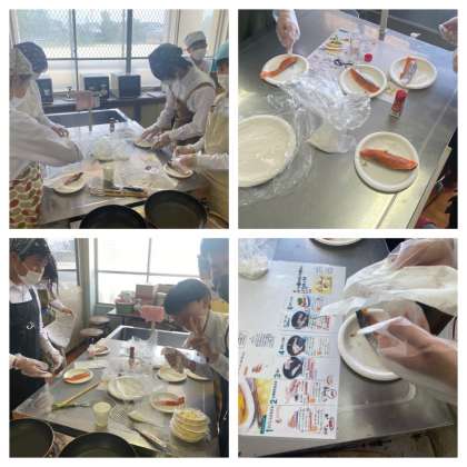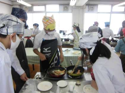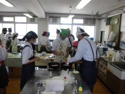 本日の2年生の家庭科では,各クラスごとに調理実習を行いました。