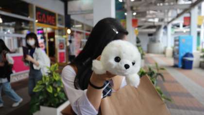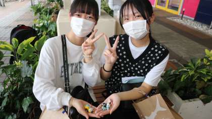 4組の様子です。天保山マーケットプレイスで遊んでいます。購入品を見せてくれました!